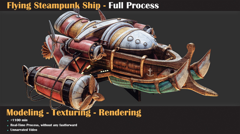 12 Apr [名家系列-MILAD_KAMBARI-无解说]3dsmax+md+rizomuv+substance+Marmoset飞行蒸汽朋克船完整教程